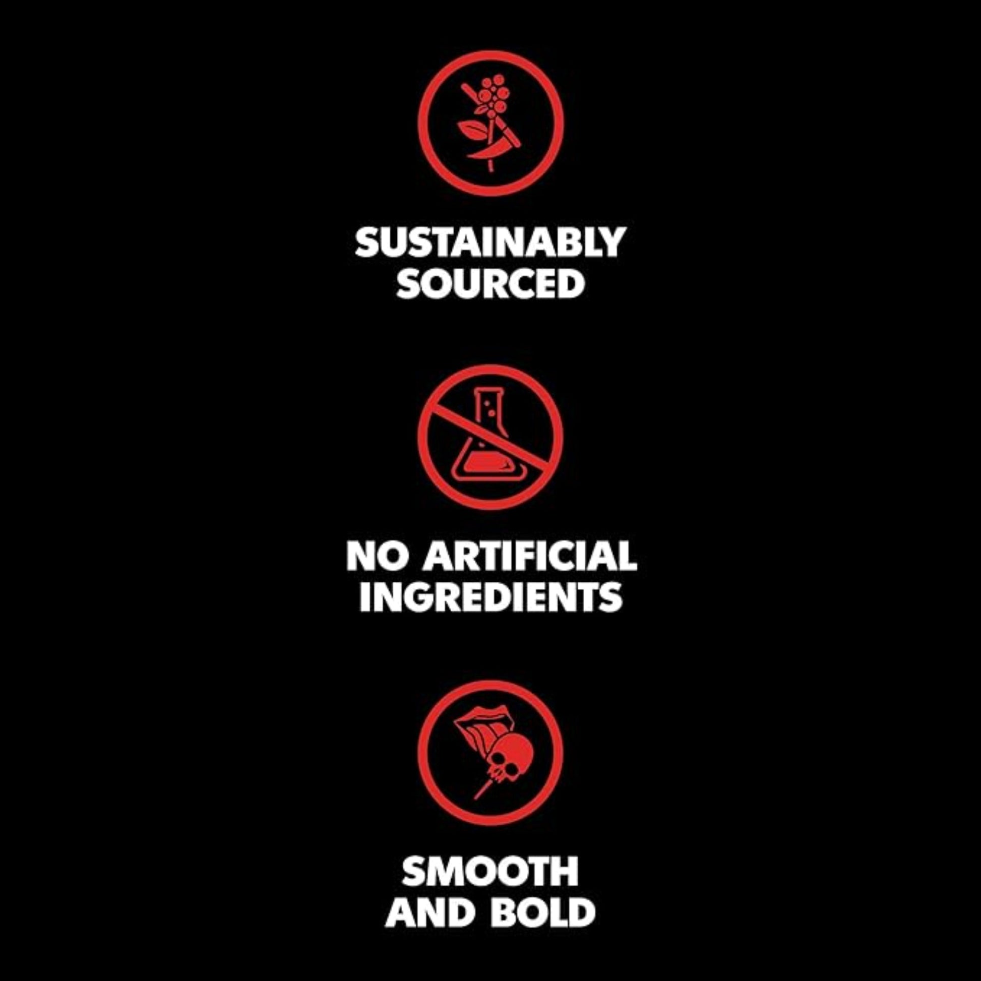 At DEATH WISH COFFEE Company, we give you premium quality beans from all over the world. We roast them to perfection to give you the best-tasting coffee to power up your day, uplift your mood, and get you ready for what lies ahead. We are proud to present you our king of coffee, our whole bean dark roast coffee that's delicious, bold, and intense. One sip of Death Wish Coffee will make you want more and more! We made this high-quality, artisanal coffee flavor so you have a bright and early morning every single day. Our Death Wish Coffee ground has smooth, subtle, never bitter cherry and chocolate notes. It's made with Robusta and Arabica coffee beans from around the world so that we can deliver bold early riser coffee straight to you. Including Death Wish Coffee in your lifestyle will be your best decision yet. We all know that coffee solves everything - our yummy coffee beans are just what you need to hit the ground running. You'll taste only the freshness and flavor! Most importantly, our coffee beans are responsibly sourced. We only get USDA Organic and Fair Trade Certified beans to support coffee farmers and the Earth's sustainability. Every coffee pack you purchase is sure to support a good cause. Have a coffee lover in your life? Do you know someone needing a little dose of caffeine? Give Death Wish Coffee now!